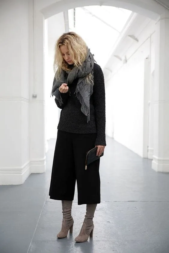 - Transition culottes into colder seasons by pairing them with a cozy sweater.