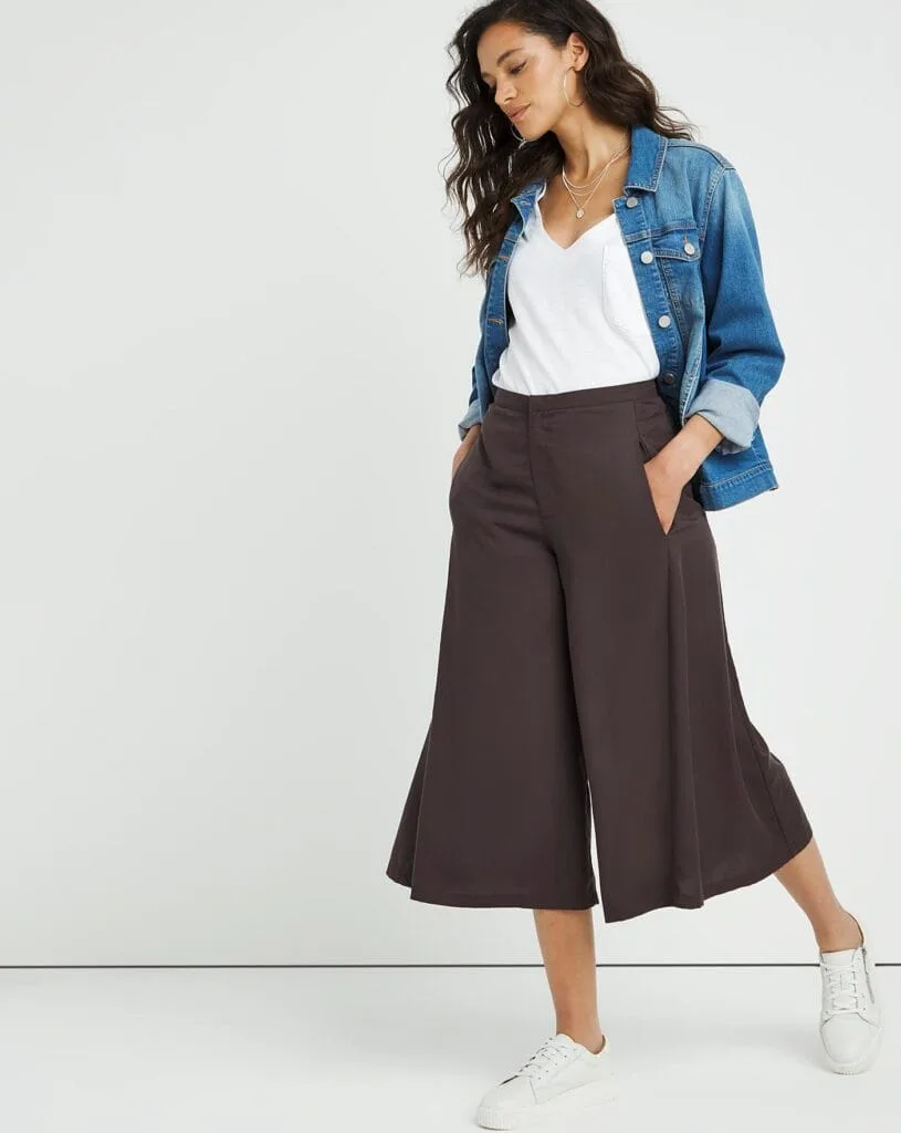 - Combine culottes with a trendy crop top or a tucked-in graphic tee for a streetwear-inspired look.
