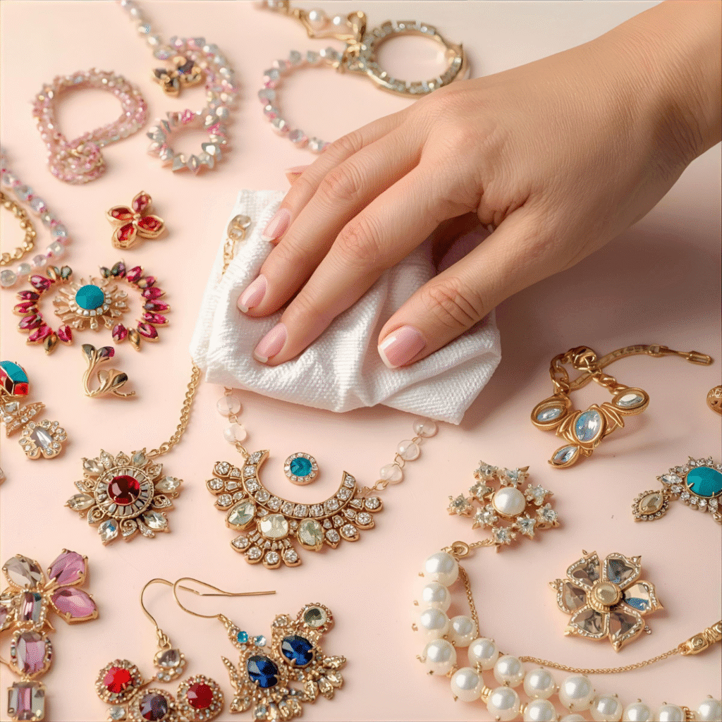 Wipe down your jewelry with a soft cloth after wearing it. This simple step removes oils and keeps things cleaner longer.